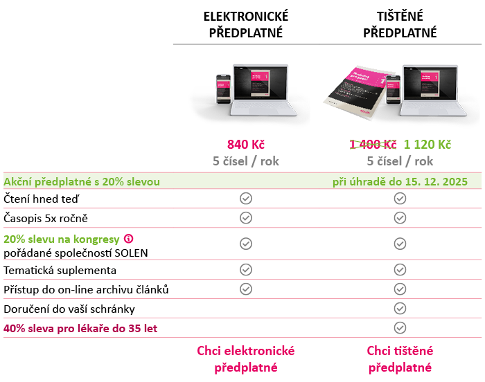20% slevu na kongresy pořádané společností SOLEN Chci elektronické předplatné Chci tištěné předplatné